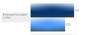 Ratio of demand in the first option / offer: