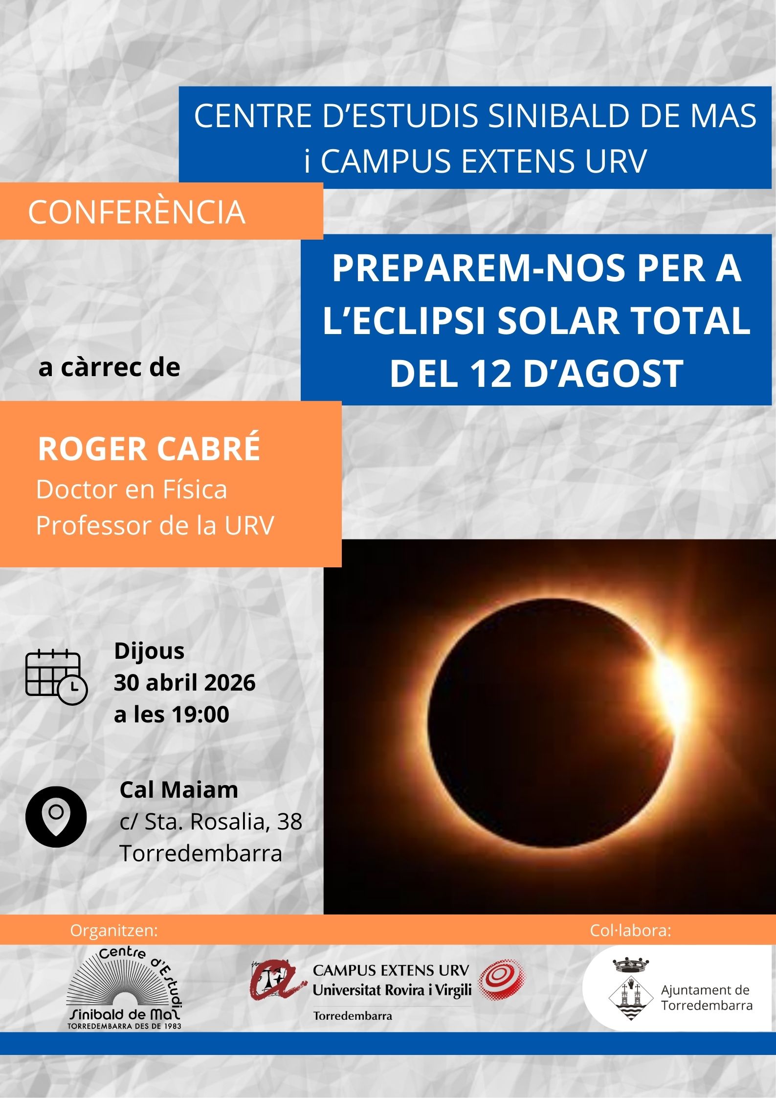 Preparem-nos per a l'eclipsi solar total del 12 d'agost - Torredembarra (30/04/2026)
