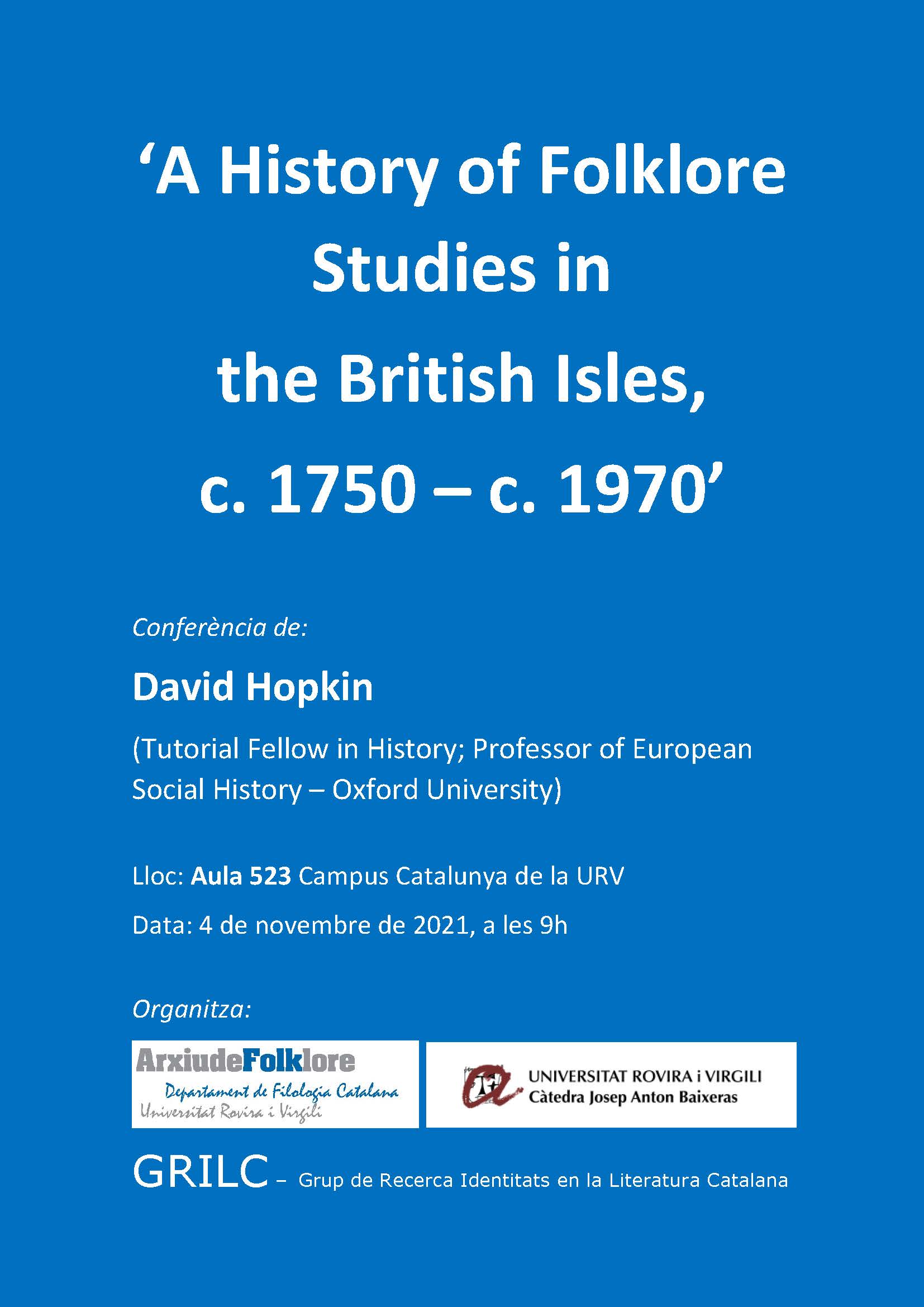 La Càtedra Josep Anton Baixeras de Patrimoni Literari Català organitza les III Jornades Càtedra Baixeras Identitat, literatura i dret, que tindran lloc, en horari de tarda, el 7 de novembre a la sala de graus i el 8 de novembre a la sala de vistes del campus Catalunya de la Universitat Rovira i Virgili.