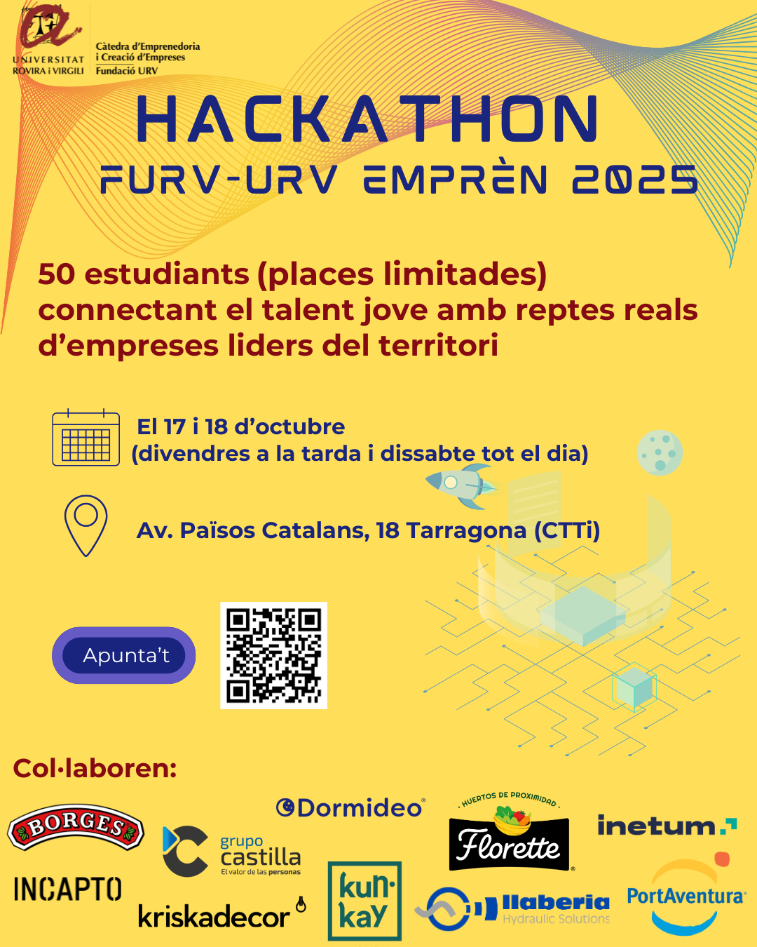 - Hackathon FURV-URV Emprèn per a estudiants de la URV. Els 17 i 18/10/2025