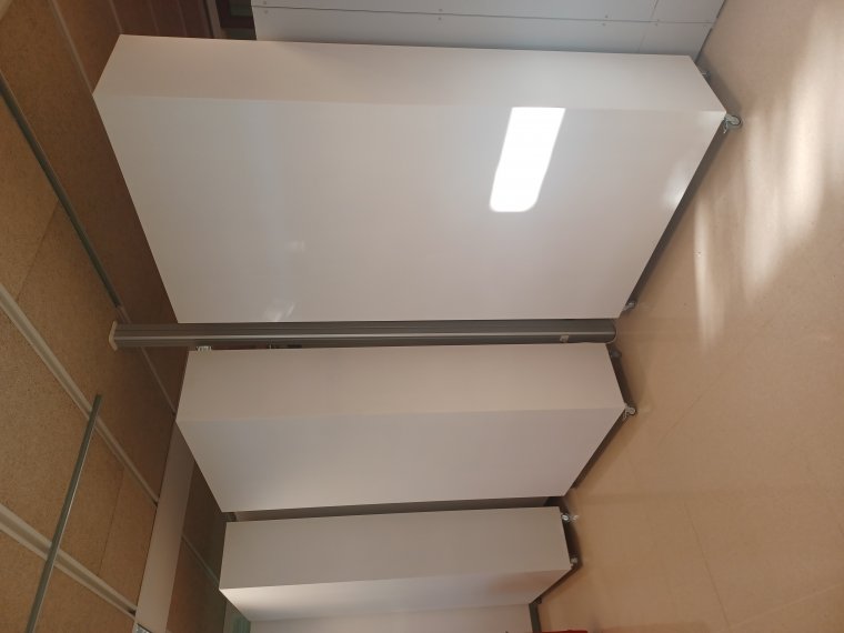 - L'espai compta amb l'opció de fer servir 5 panells de fusta amb rodes, de 220 cm d'alt x 120 cm d'ample.
