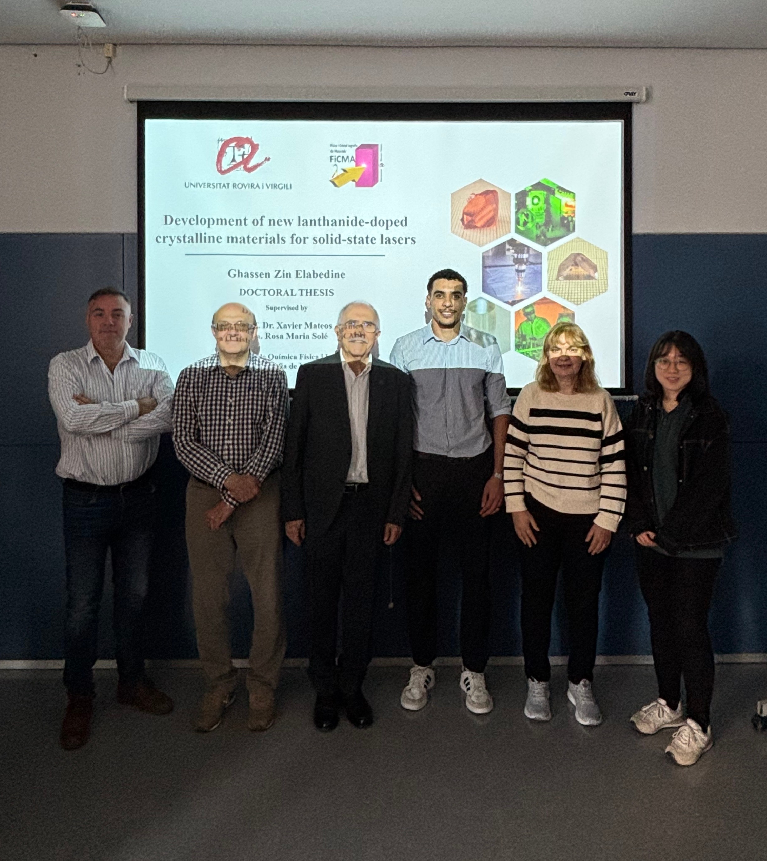 L'estudiant Ghassen Zin Elabdine ha defensat la seva tesi doctoral avui 10 d'octubre de 2025, que duu per títol "Development of new lanthanide-doped crystalline materials for solid-state lasers" supervisada pel Prof. Xavier Mateos i la Dr. Rosa Ma Solé.
