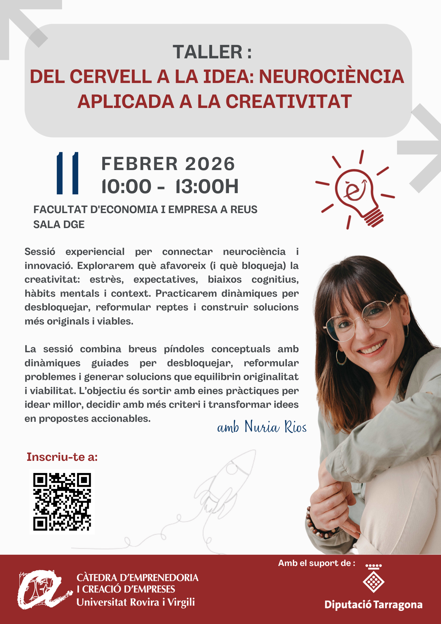 - Taller "Del cervell a la idea: neurociència aplicada a la creativitat". El 11/02/2025
