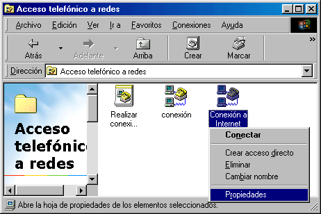 el icono "Mi PC" del escritorio, y dentro de "Acceso telefónico