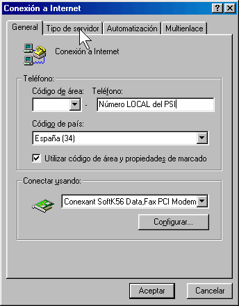 Ahora accedemos a ella, desde el menu Mi PC, conexión telefónica a redes, Conexión a Internet.