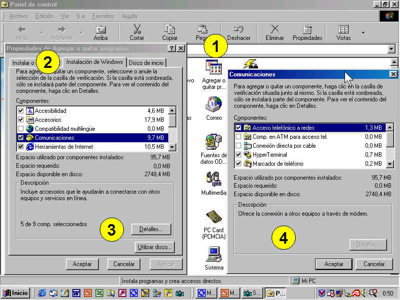 Los paso que deberá realizar para instalar correctamente el Acceso Telefónico a redes, si no lo tiene ya instalado en Windows, son los siguientes: