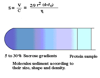 Las moléculas sedimentan de acuerdo con su tamaño, forma y densidad (todo ello determina su coeficiente de sedimentación). |