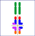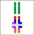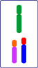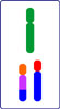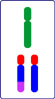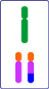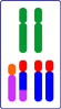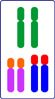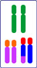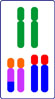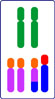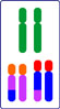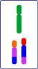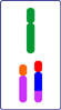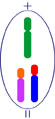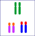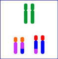 Los cromosomas "normales" se muestran en verde y los brazos p de los cromosomas están en colores diferentes.