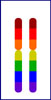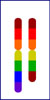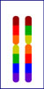 animación del entrecruzamiento en la meiosis en un caso normal: hay entrecruzamientos en tres puntos. | animación de anomalías cromosómicas causadas por el entrecruzamiento de la inversión pericéntrica (entrecruzamineto en el segmento verde). |