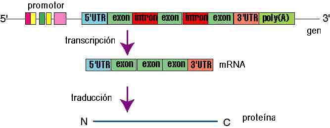 Gen - La unidad hereditarua básica, definida inicialmente por el fenotipo. Por definición molecular, una secuencia de DNA necesaria para la producción de un producto funcional, normalmente una proteína pero en ocasiones un RNA.