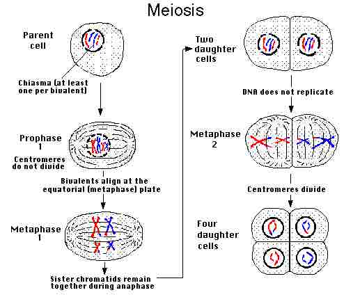 Meiosis - Resuleve el problema de evitar que el tamaño del genoma se duplique en cada generación de un organismo sexual. Es el proceso de división celular en el que se forman los gametos haploides a partir de células germinales diploides. Los errores en la meiosis son responsables de las principales anomalías cromosómicas.