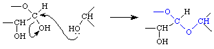 Compuestos con grupos OH, NH2 y SH pueden reaccionar con el OH hemiacetálico del carbono anomérico de un monosacárido, con pérdida de una molécula de agua para formar los compuestos llamados generalmente glicósidos. El enlace acetálico establecido se llama enlace glicosídico. Según la naturaleza del grupo reaccionante se distinguen O-glicósidos (a partir de un OH), N-glicósidos (a partir de un NH2) y S-glicósidos (a partir de un SH).