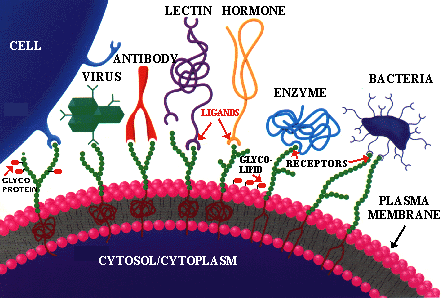 de reconocimiento en superficie, ya que son parte integrante de los glicolípidos
