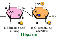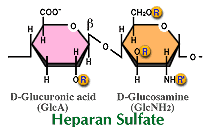 ![]() Consta de ácido D-glucurónico o L-idurónico y N-acetilglucosamina. Puede estar sulfatado en diversas posiciones. |