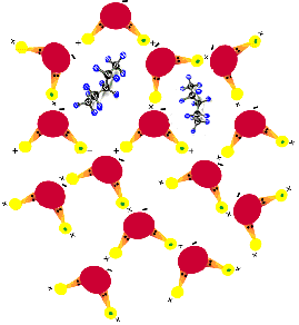de moléculas lipídicas, el agua adopta en torno a ellas una estructura