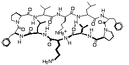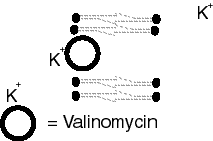 La valinomicina y la gramicidina son dos péptidos cíclicos con acción antibiótica. Los dos contienen aminoácidos de la serie D, además de otros aminoácidos no proteicos. La valinomicina es un ionóforo: es capaz de transportar iones potasio (en color verde en la figura) a través de las membrana biológicas.