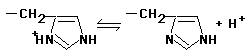 Por este motivo, las proteínas poseen un considerable poder amortiguador en una amplia zona de pH. Aunque cada AA tiene unos grupos ionizables con unas constantes de ionización (pKa) características, el valor de dichas constantes puede verse ligeramente modificado por el entorno proteico. El grupo imidazol del AA histidina es el principal responsable del poder amortiguador de las proteínas a pH fisiológico, ya que su pKa está próximo a 7. |