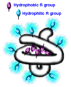 residuos hidrofóbicos de las proteínas se acumulan en el interior