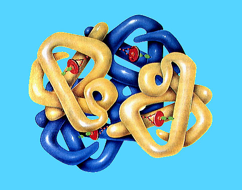 dar lugar al oligómero. La figura de la derecha corresponde a la hemoglobina. |