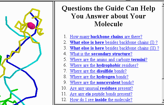 The questions in the Guide, and methods for answering them in the Explorer, are already available in the tutorial built into the Protein Explorer.