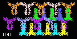 select within(4.5, (rit and model=21)) and model=21 show residueThe list of contacting residues was then copied from the message window. These residues were then coded into the script so they can be highlighted in all models. Here is the script using this information: