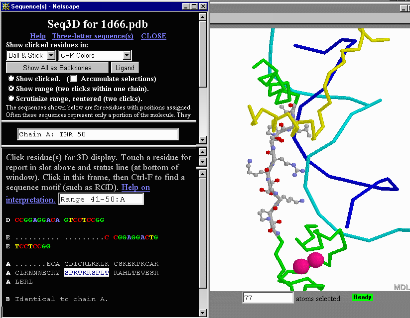 three-letter amino acid code. Clicking on a residue, or range, displays