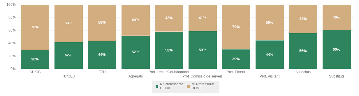 (*) Índex sostre de vidre = [Dones de les categories {CEU, TEU, TU, AGREG, COL, LEC}] / [Dones de les categories {CU, CC}].