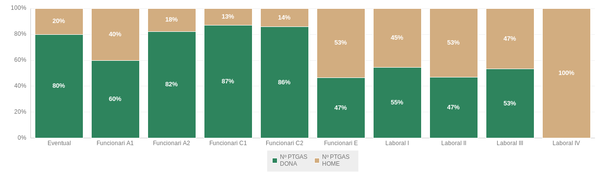 Percentatge de dones en els diferents col·lectius. Curs 2023-24