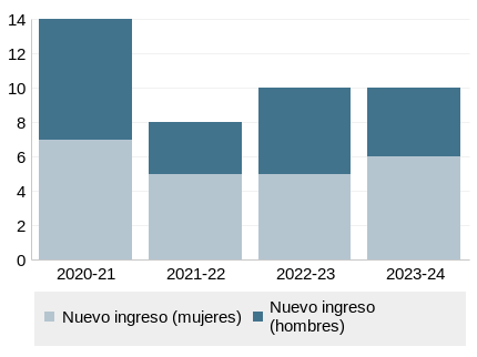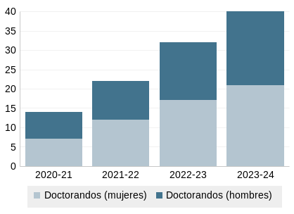 Curso académico | Estudiantes | Estudiantes (mujeres) | Estudiantes (hombres) | % Estudiantes con contrato de PIPF (1) | % Estudiantes con contrato de PIPF (mujeres) (1) | % Estudiantes con contrato de PIPF (hombres) (1) | % Estudiantes a tiempo completo | % Estudiantes a tiempo parcial | % Estudiantes extranjeros |