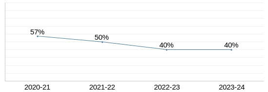 2023-24 | 40 | 21 | 19 | 25% | 33% | 16% | 88% | 13% | 33% |