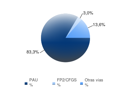 Nota de corte + Tasa de abandono en primer curso + Tasa de abandono  + Tasa de rendimiento + Tasa de graduación + Duración media de los estudios (en años) + Porcentaje de estudiantes extranjeros + Alumnos de prácticas externas + Alumnos en movilidad 5,8% 5,2 9,5% 32,3% 70,6% 27,4% NUEVO ACCESO POR VIA DE ACCESO MATRÍCULA POR SEXO ESTUDIANTES DE NUEVO ACCESO POR NOTA DE ACCESO  OFERTA Y DEMANDA  EVOLUCIÓN DE LA MATRÍCULA INDICADORES  Matrícula Actividad Resultados Titulados + Media de créditos matriculados por curso + Porcentaje de estudiantes de Tarragona + Tasa de eficiencia 86,5% 50 93,0% + Tasa de rendimiento en primer curso 75,8% 44 + Grado de satisfacción